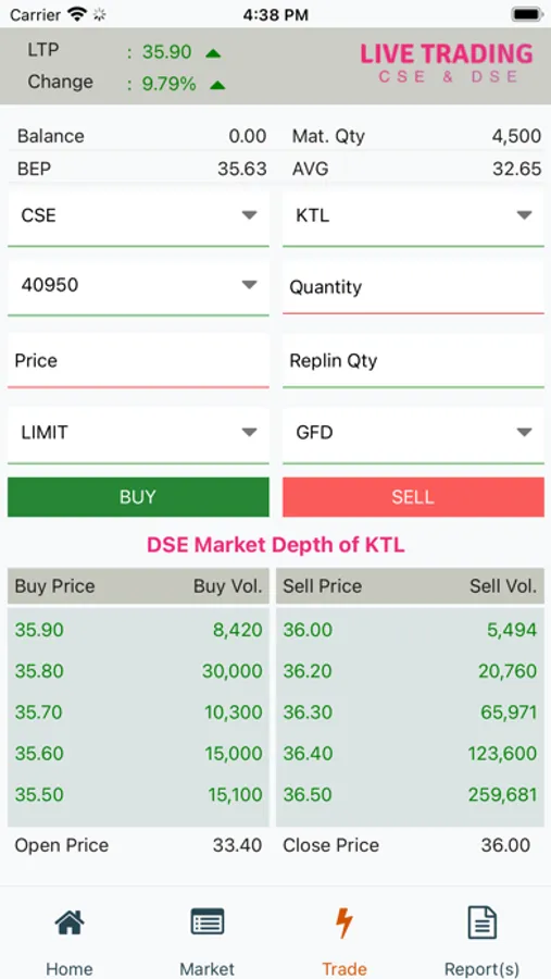 7. Live Market Depth Monitor both of CSE, DSE