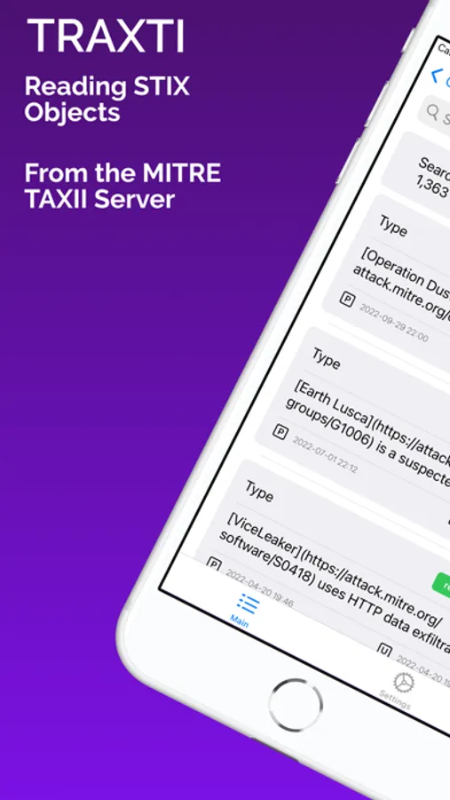 TraxTi is a STIX object reader. It presents the available collections from the MITRE Taxii server. Upon selection of a collection a list of objects is fetched and presented. Upon selection of an object the object details are shown. It provides the following: