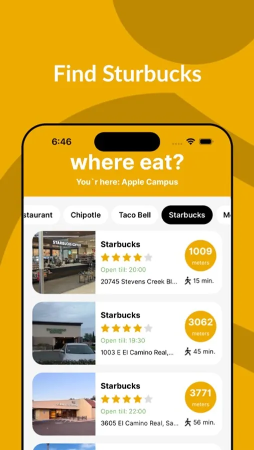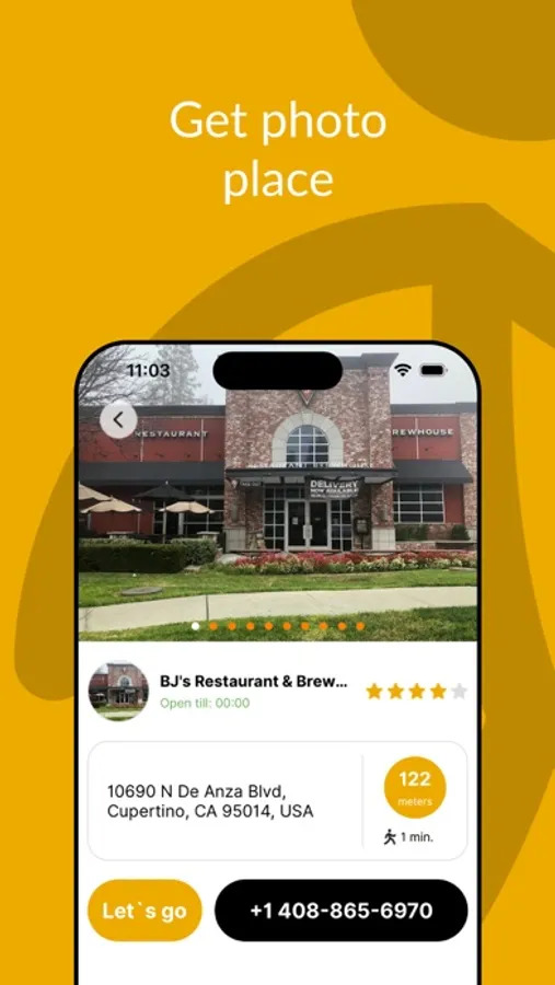 The application helps you find a near place where you can have a snack or lunch, you can also view photos or place a call or to pave a route. You can see reviews about place.