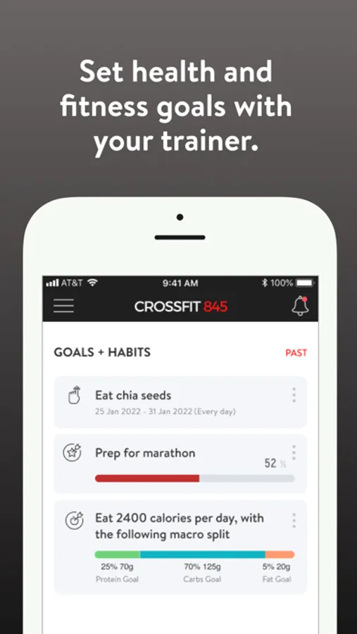 With the CrossFit 845 App, you will have access to workout programs designed specifically to help you reach your fitness and health goals! You can follow & track your workouts, your nutrition, your lifestyle habits, measurements and results–all with the help of your coach.