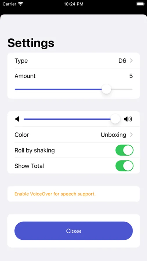 - Optimized for VoiceOver: Announce all dice values after throwing