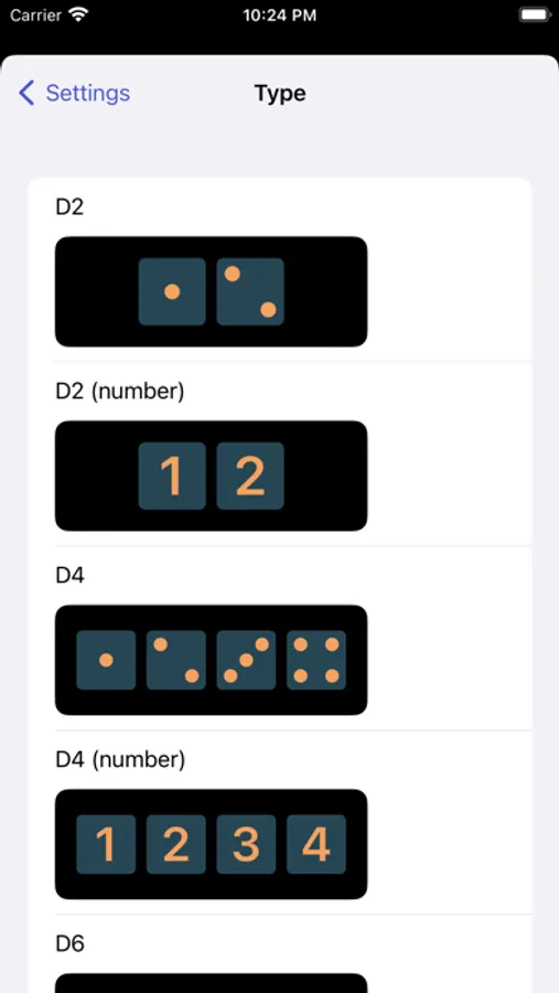 - Various dice type: D2, D4, D6, D8, D10, D10 (with zero), D12, D20