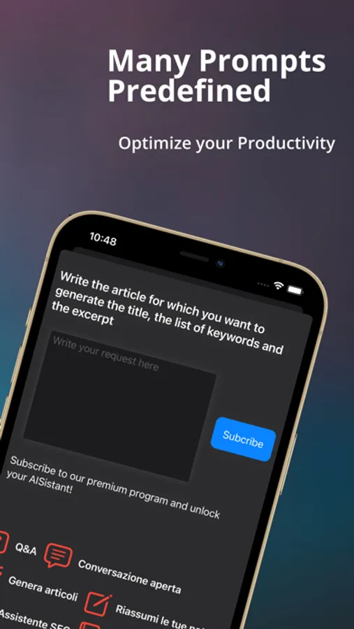 Introducing AISistant - your invaluable AI assistant for iPhone at an unbeatable cost. Fusing high-end functionalities with the demands of modern life, AISistant simplifies a diverse set of tasks, making it perfect for busy professionals and diligent students alike.
