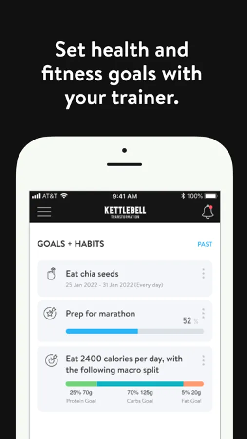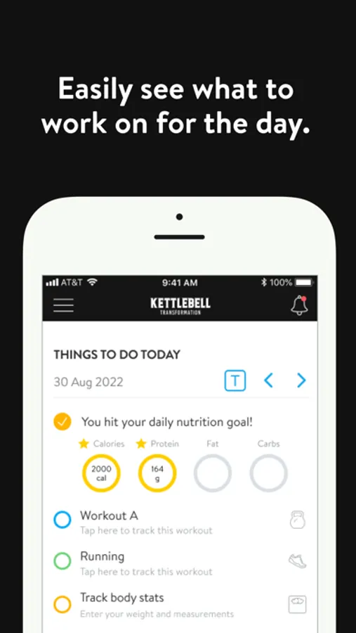 With the Kettlebell Transformation App, you will have access to workout programs designed specifically to help you reach your fitness and health goals! You can follow & track your workouts, your nutrition, your lifestyle habits, measurements and results–all with the help of your coach.