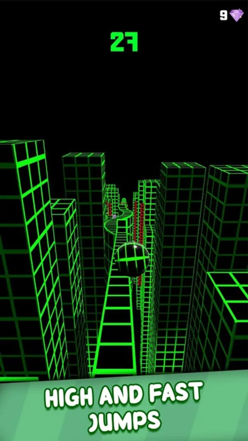 Just keeping the roller ball on the road may sound easy. Well, maybe at the beginning it’s easy. But as you roll and jump in the sky, the road and rooftops can get tiny, and numerous obstructive objects can occupy the road. This is when you need to show your skills and reflexes. The goal of the game is to achieve and break your high scores. Can you become one of the 1% players club that scored more than 1000 points?