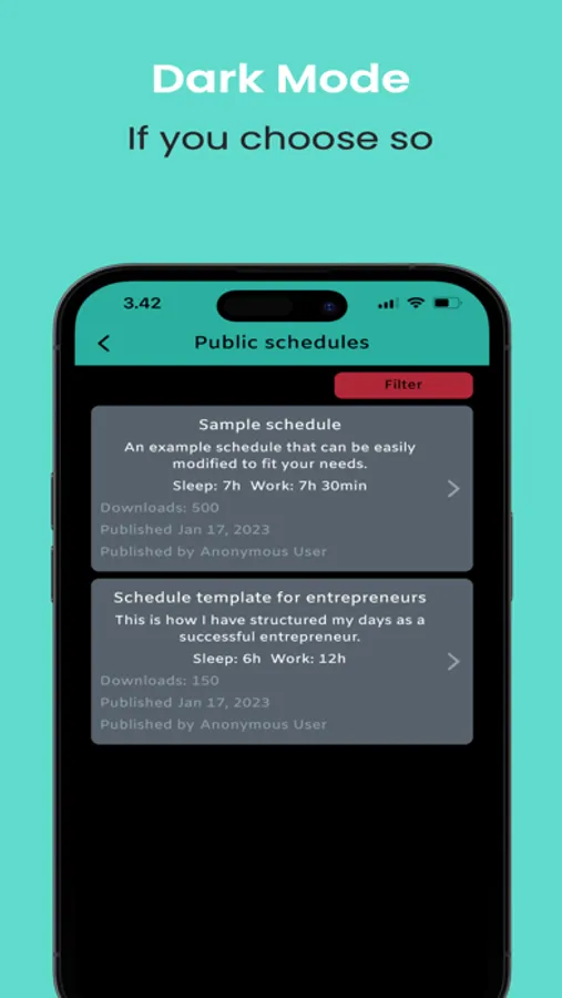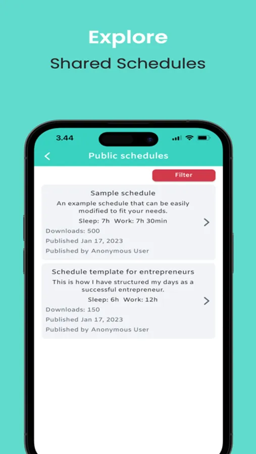 Browse shared schedules: find inspiration for your ideal daily routine. Share schedules with other users.