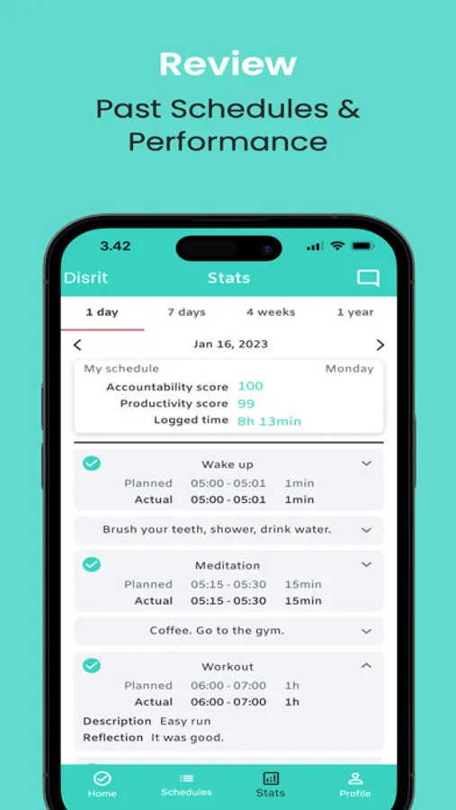 Disrit is a self-leadership app that helps you manage your daily routine and track your performance.