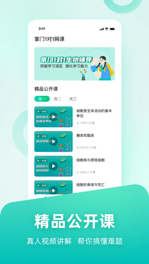 掌门1对1网课是一款集合了高中生物各阶段知识点、重点、易错点、高频考点的在线学习平台,通过题库学习数据精准定位薄弱环节,量身定制学习方案,专注培养学生解题思维与底层学习能力,全方位解决学习疑问,帮助学生突破高考难点!