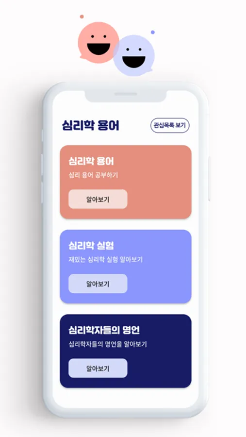 심리학 용어, 실험, 심리학자들의 명언 등을 통해 쉽고 가볍게 심리 공부를 해보세요!