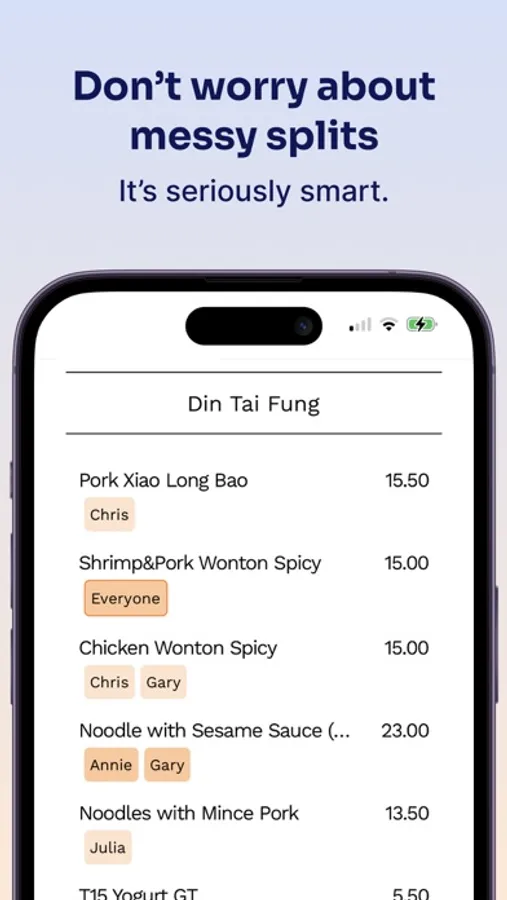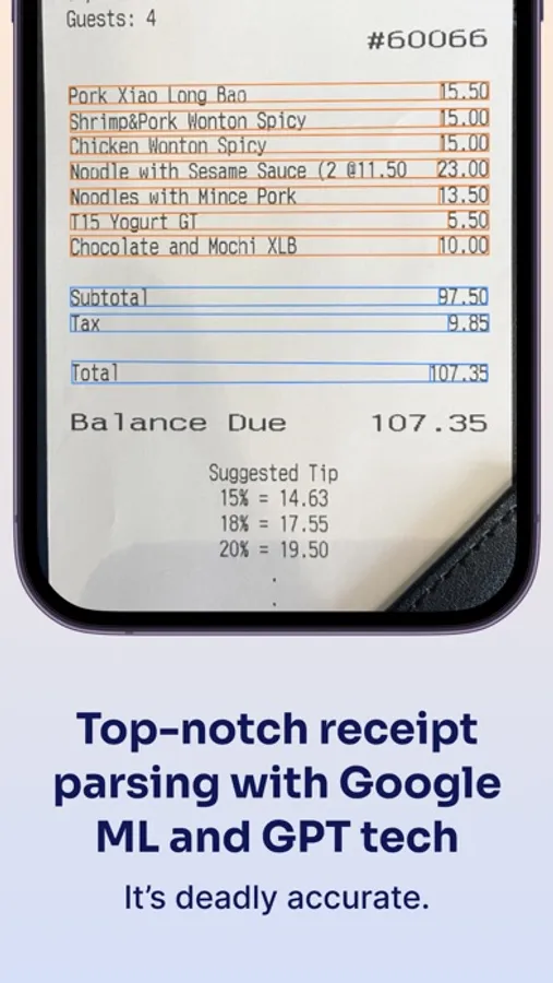 Pita harnesses Google's machine learning power and GPT technology to read your receipt instantly and lay it out for you. No more manually adding items and prices!