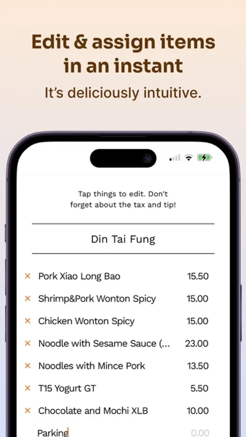 or chose one from your camera roll. After Pita parses your receipt and lays out the items, you can make any edits you need.