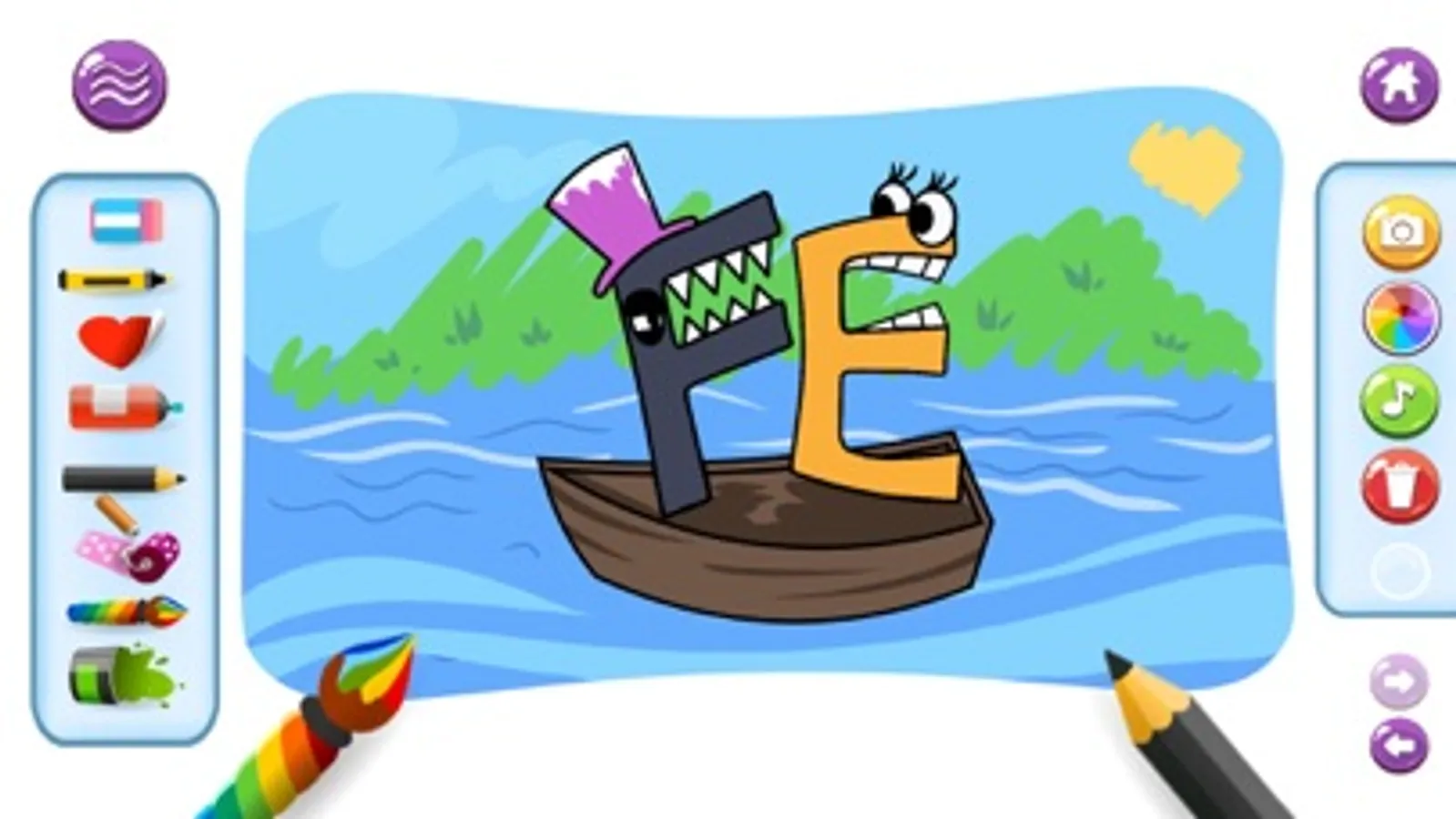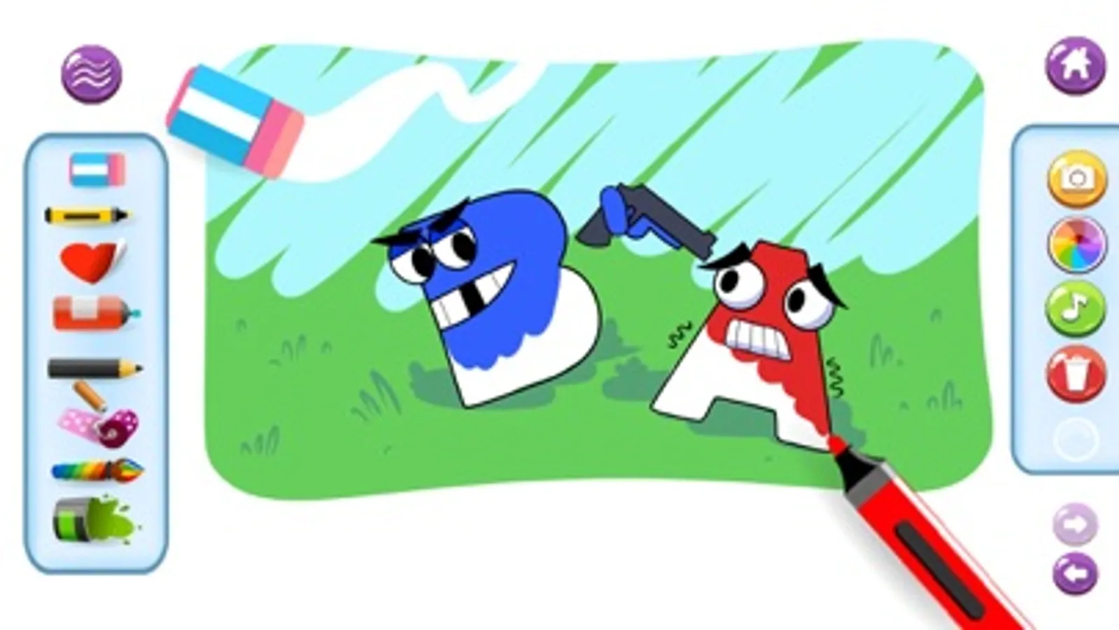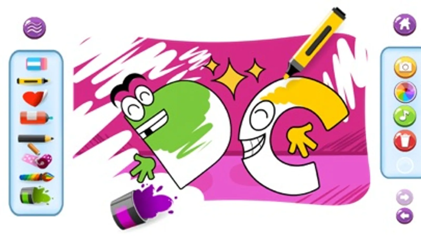 Use your finger or draw with pencils and markers. Use the interface buttons to select
