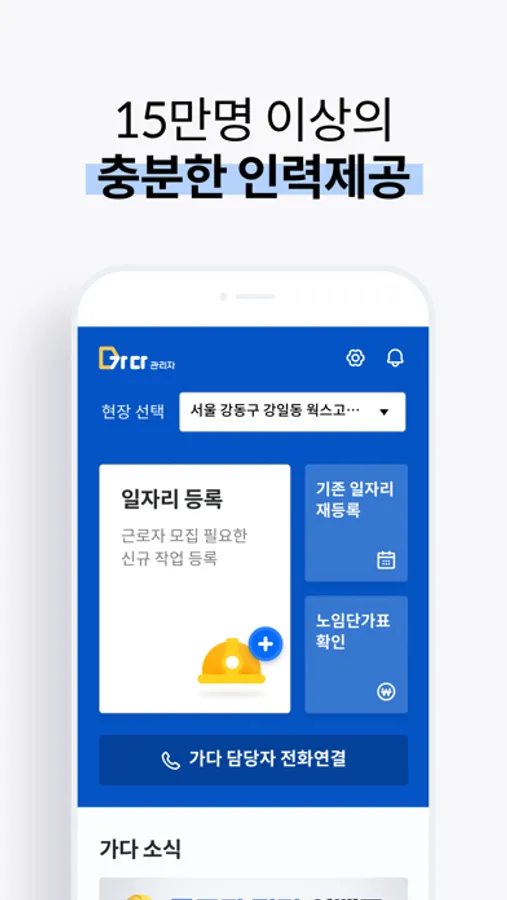 가다는 건설 일용직 일자리 구인을 위한 비대면 인력 사무소 어플 입니다.