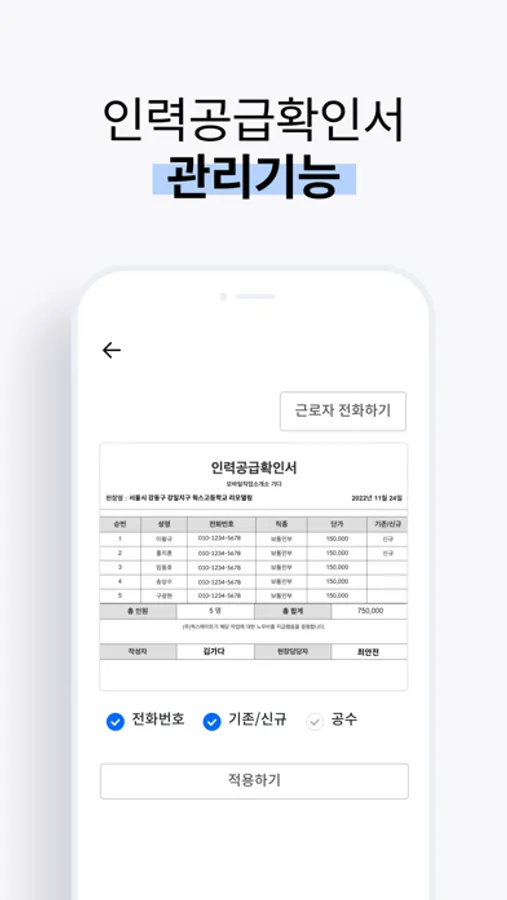 - 인력공급 확인서 등 근로문서 자동 발급까지 해결 합니다.