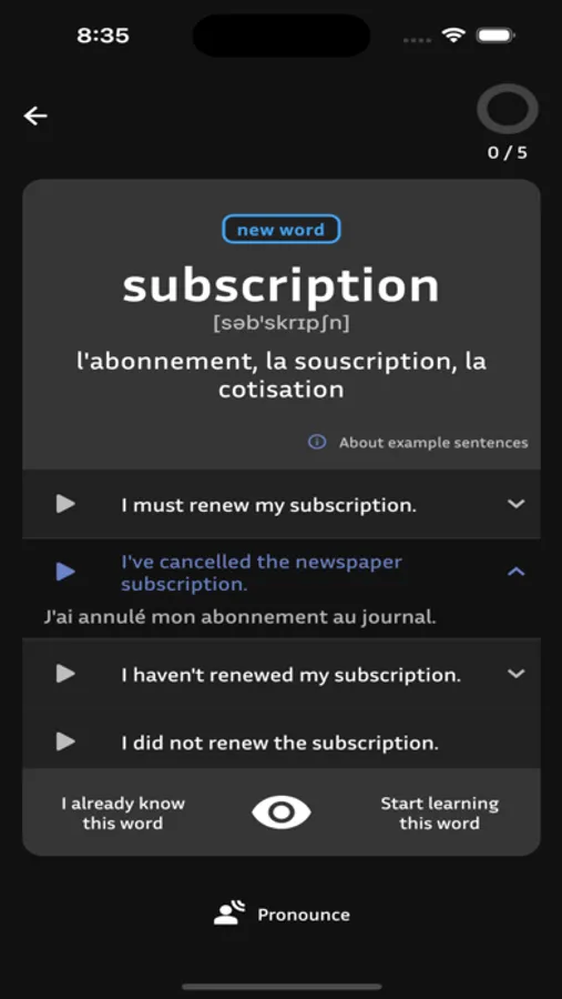 Wordmit can pronounce the word you see on the screen to you. You can adjust the pronunciation speed, you can also listen to the words manually if you want.