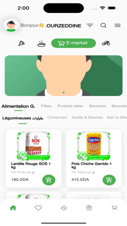 1- Choisissez le Restaurant ou le Fournisseur House Food, et/ou choisissez les Article de Shopping dans le Volet E-Market;