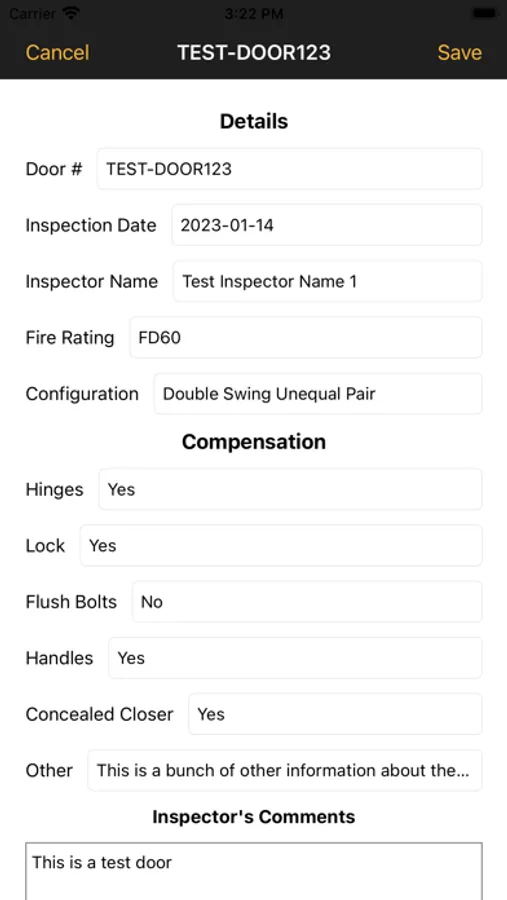 FDIS-Compensate allows inspectors to login to conduct, view and manage reports of fire door compensation installation. All elements of reports can be handled from within the app, and the app runs on iOS on iPhone and iPad devices.