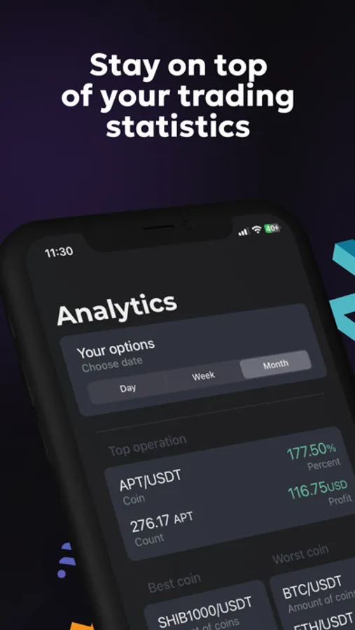 Unleash the power of data-driven decisions. Keep a firm grip on your trading statistics and trends to make informed choices that lead to success. Whether you're a seasoned trader or a curious newcomer, our app equips you with the tools to stay in control of your crypto journey.