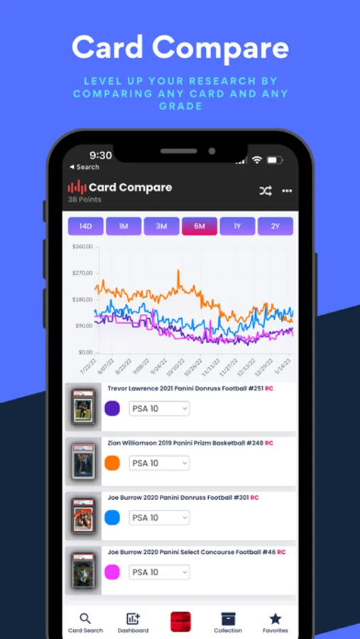 • Powerful card compare tool allowing you to easily compare across cards and grades