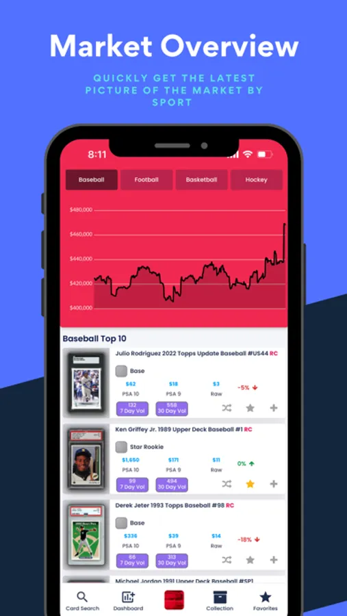 Track the value of your collection, identify cards that are worth the most, and make informed decisions when buying or selling with our user-friendly app. It's a one-stop-shop for all your sports card pricing needs, now available at your fingertips.