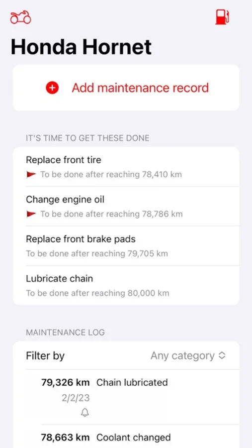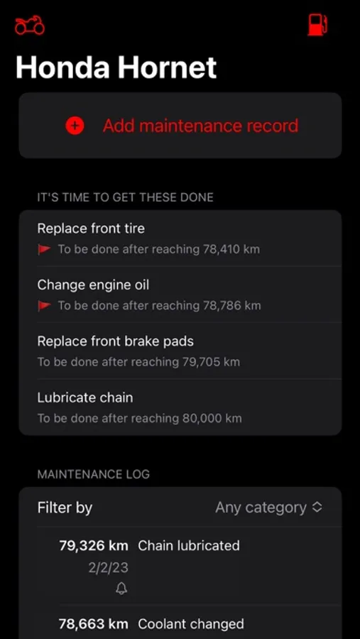 Now you have Simple Moto Logbook which is specifically designed for that. You just create a record for changing oil, tires, or for any other service you do, and set up reminders to be on time with the next service check.