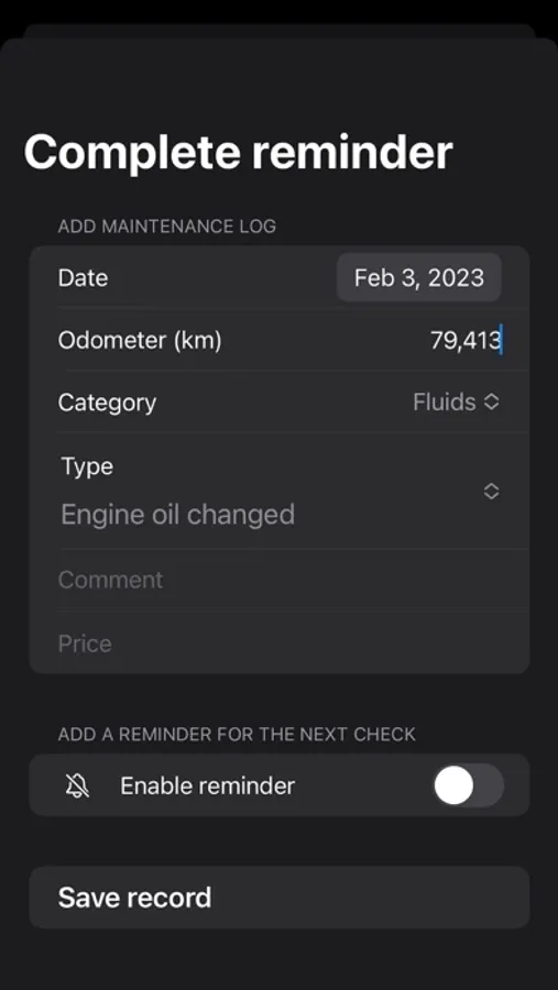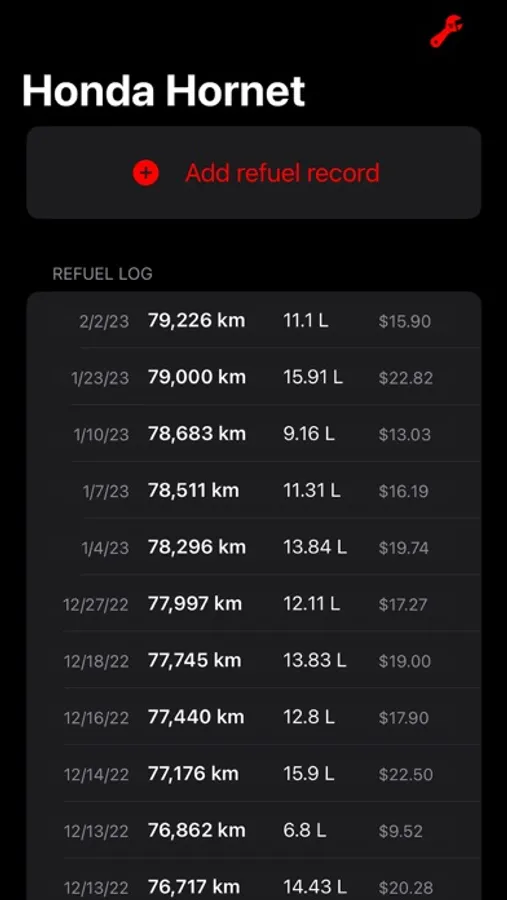 Use it also to keep track of your gasoline consumption by entering the mileage and gasoline every time you refuel.