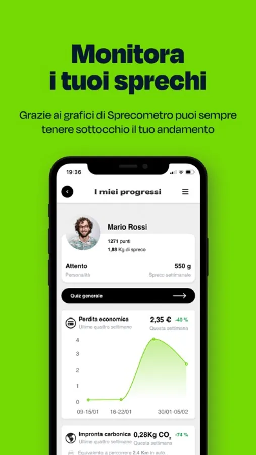 - permette di valutare i progressi avvenuti nel corso del tempo aggiornando puntualmente il proprio comportamento seguendo un diario dello spreco;