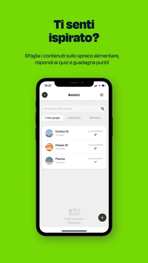 - permette di confrontarsi con altri utenti attraverso dei punteggi creando dei cluster di riferimento: amici, famiglia, classe scolastica/universitaria, azienda, pubblica, amministrazione…una sfida da vincere tutti assieme;