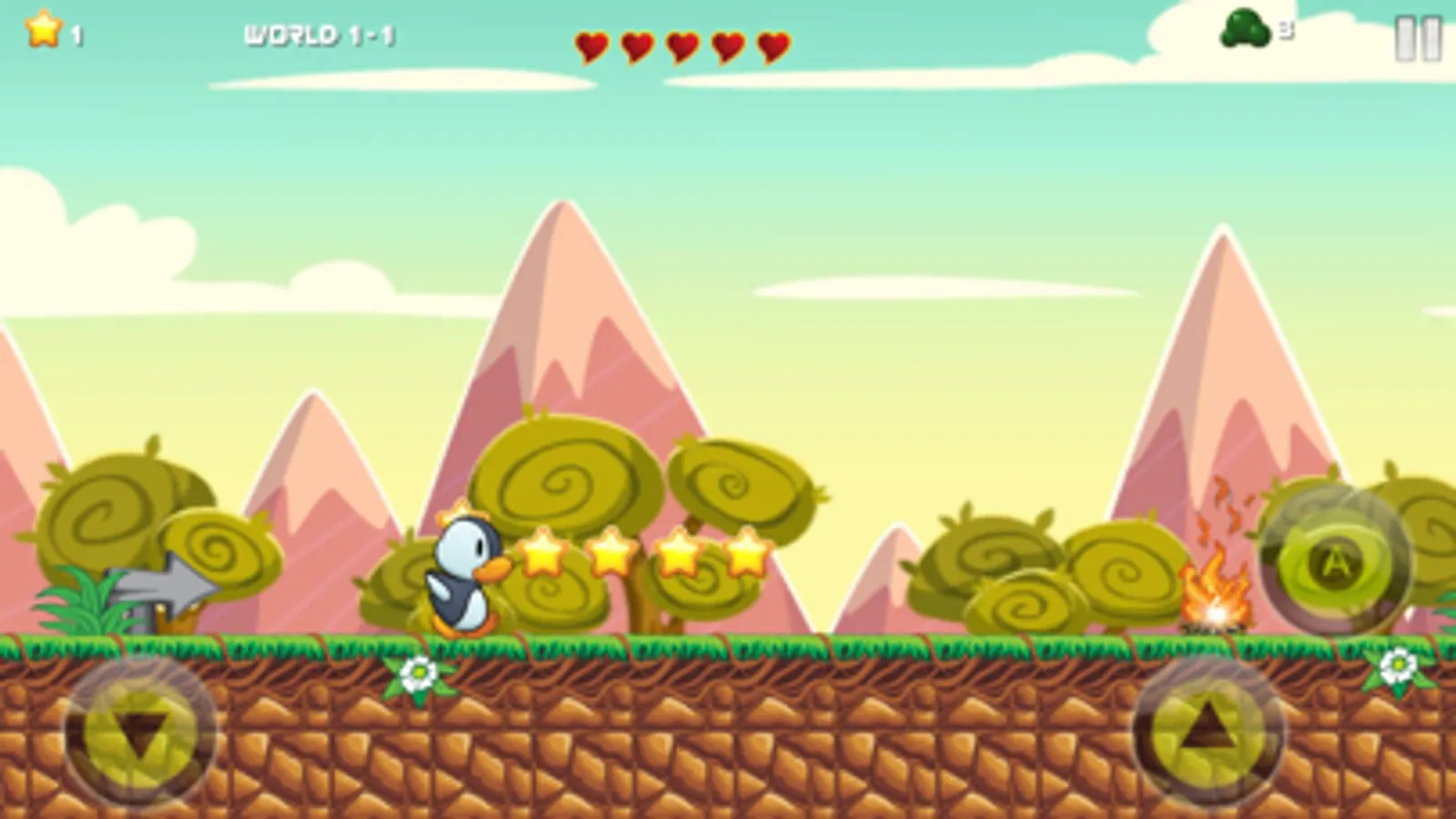In this adventure game, The little penguin will run and collect coins, power-up to fight with bosses.