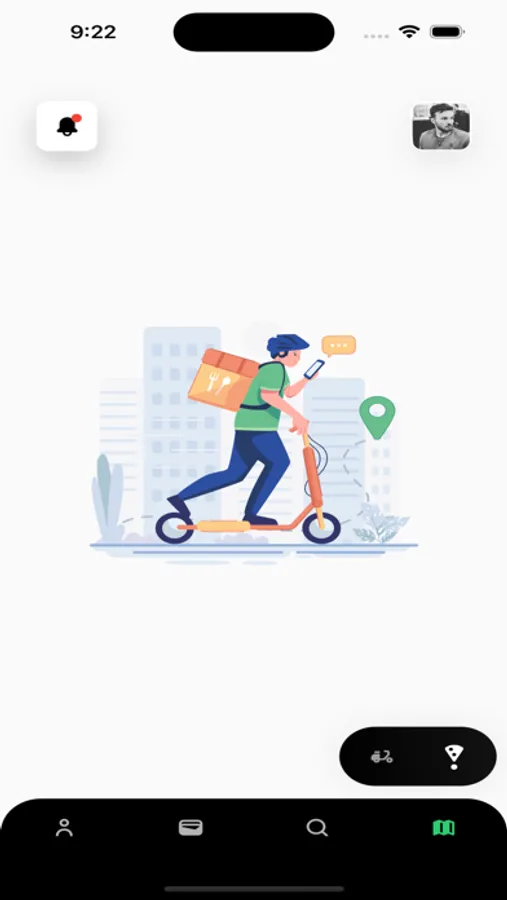 - l’accueil principale où le livreur peut voir les notifications des nouvelles commandes, les acceptés et livrer;