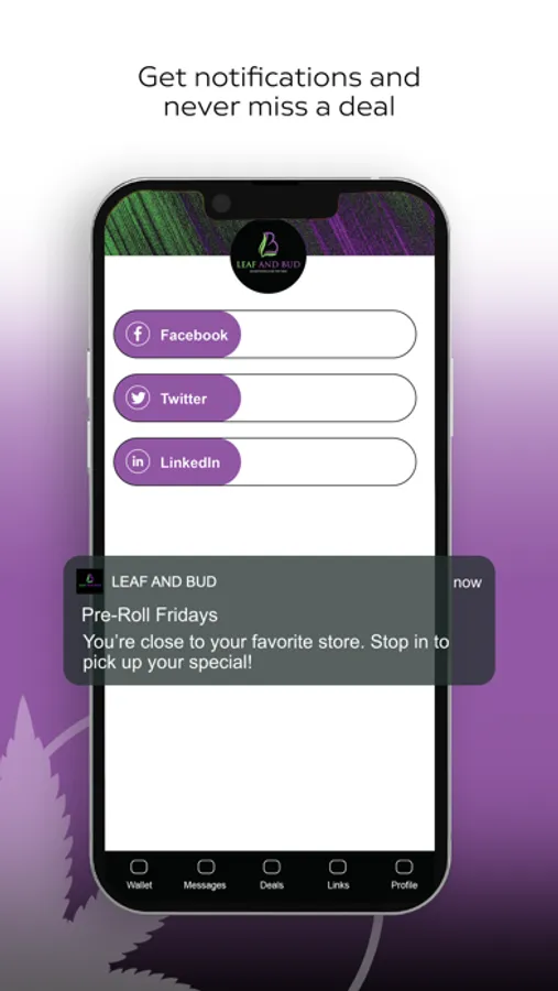 Get more of your favorite dispensary with the official Leaf and Bud. app! Get exclusive offers, deal alerts, browse our social media and much more! You will have access to our VIP messages with special deals right at your fingertips. Staying connected to your favorite dispensary has never been easier.