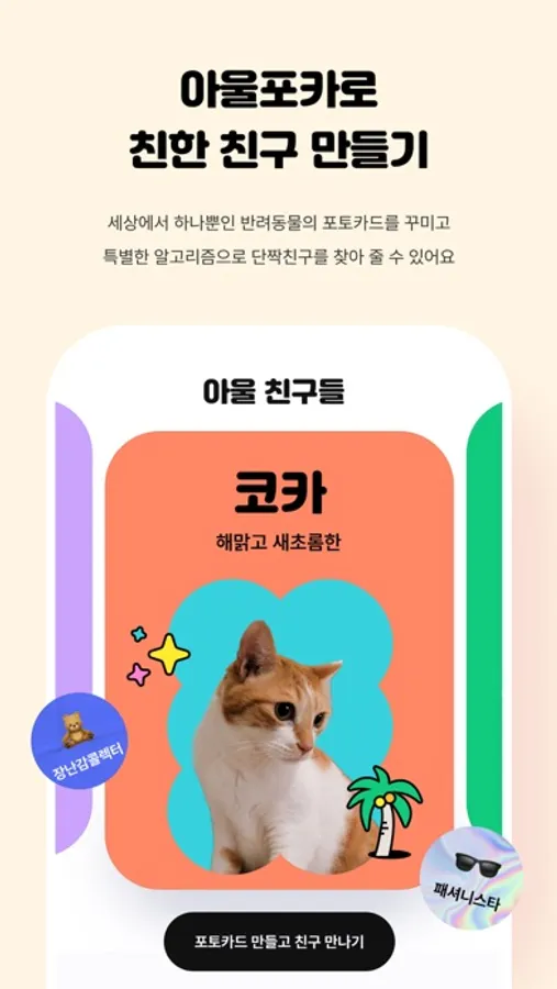 특별한 알고리즘으로 반려동물에게 단짝친구를 만들어줄 수 있어요.