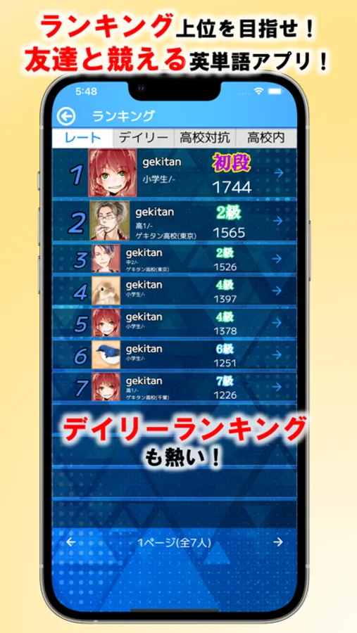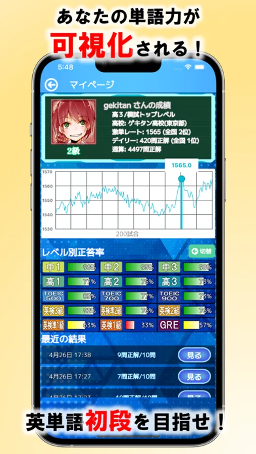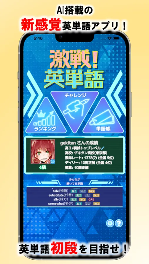 英単語力を全国のプレイヤーと競う英単語アプリです。