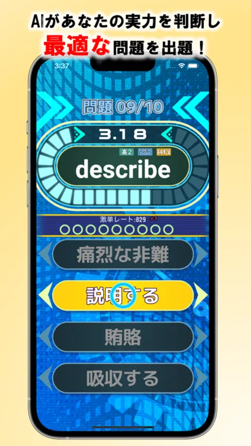 中学生、高校生から社会人まで、あなたの英語力をAIが自動で計測し、ちょうど勉強になるレベルの単語が出題されます。