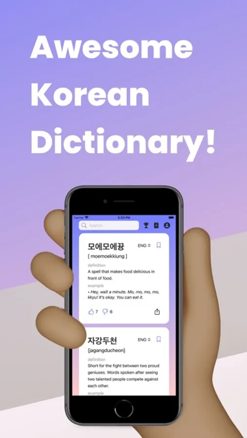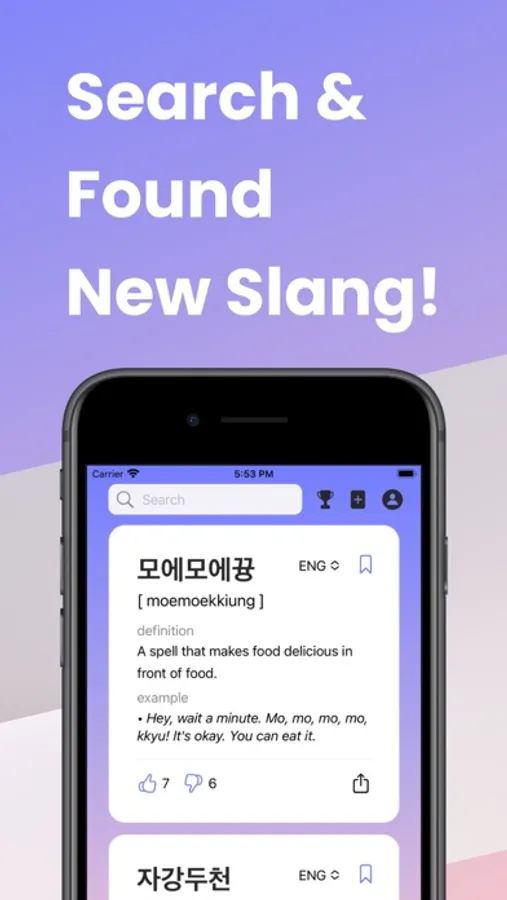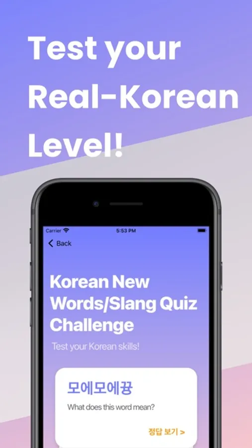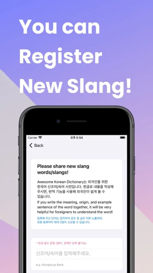 This app explains the slang used by 'real' Koreans and provides examples to help them understand.
