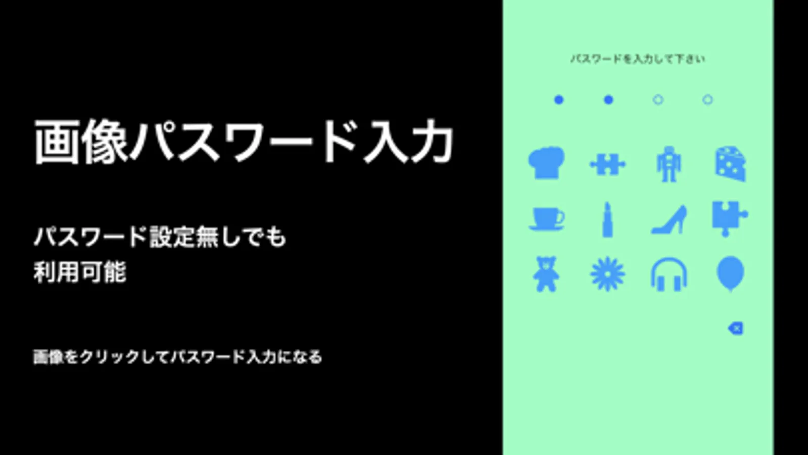 ・数字のパスワードでなく、覚え易く画像をパスワードとして識別できるようになります。