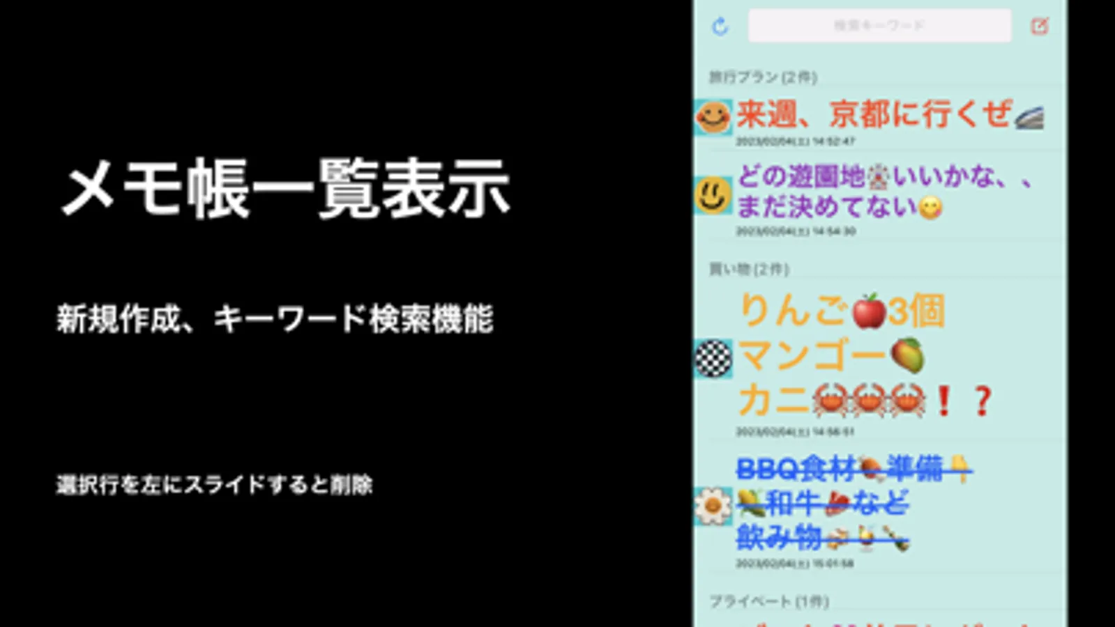 ・メモ帳リストから検索キーワードでメモ帳を検索機能に設けています。