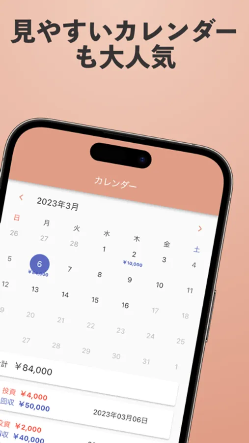 カレンダーを使用して収支を表示することができます。