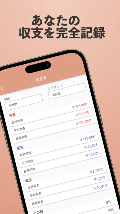 収入の合計や支出の合計、収支の差額などを表示することで、自分の収支状況を一目で確認できます。