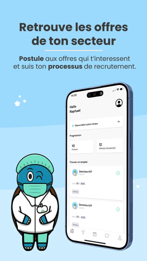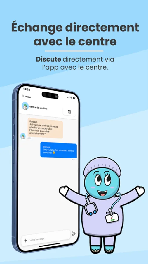 En utilisant l'application, les candidats peuvent échanger directement avec les centres de santé et discuter avec eux via l'application. Ils peuvent également programmer leur planning, organiser et gérer leurs entretiens facilement.