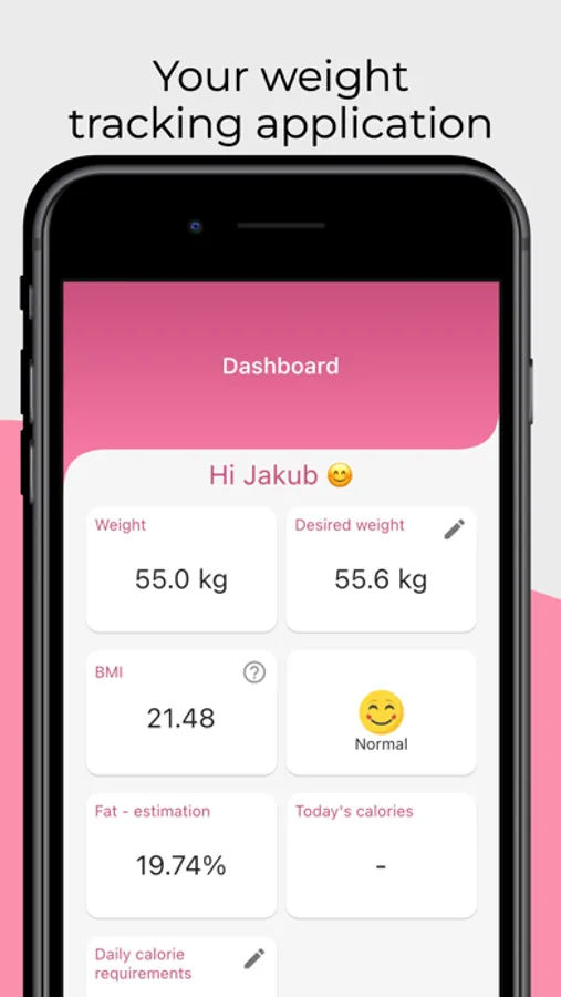 By using this app daily, tracking your weight loss progress is simple. It also can be used if you want to measure your weight gain. Just create your profile(it's on your phone only) enter your weight and on the main screen, you'll see your progress from the last day, automatically calculated BMI and body fat ratio so no need to manually enter data each time you want to know them to body fat ratio or BMI calculator. You’ll get to know your BMI as a number and its textual presentation like normal, overweight, or underweight. You'll also see emojis that would visually describe your BMI and keep you motivated to be healthy.