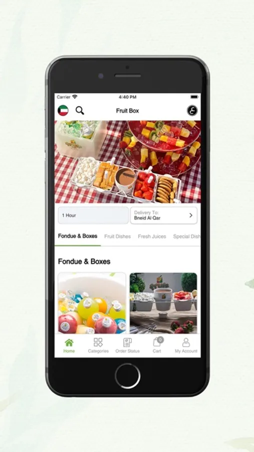 Fruit Box application is your best choice to find juicy and fruity flavors that are full of goodness and delicious taste. Just open the app and scroll to the category that have what you want to taste then pick the product you like, and it will be delivered to you or you can pick it up as you wish.