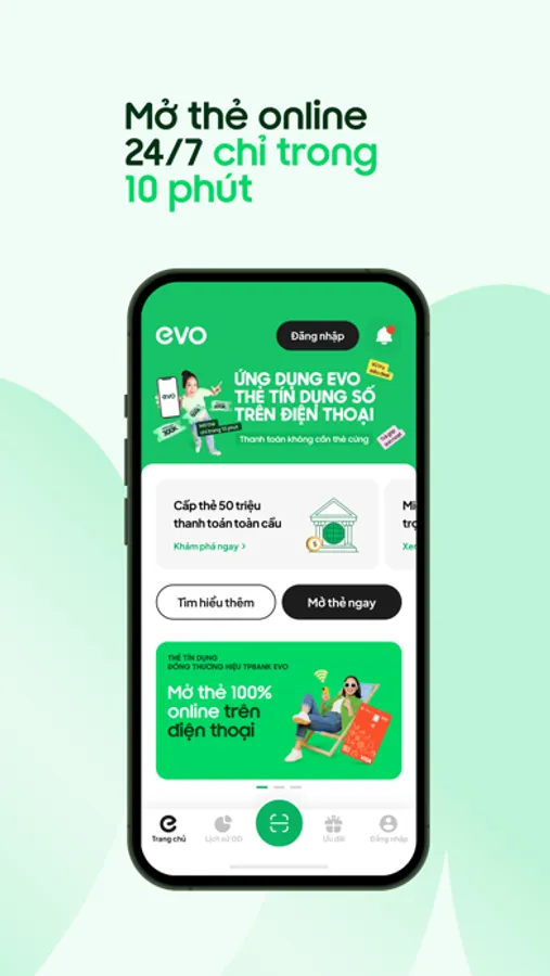 Thẻ trong điện thoại là một cách tuyệt vời để theo dõi và kiểm soát các khoản chi tiêu trên thẻ tín dụng của bạn. Để sử dụng ứng dụng EVO, hãy sở hữu ngay thẻ TPBank EVO. Không cần đợi thẻ cứng đến tay, vẫn có thể liên kết thẻ ngay và sẵn sàng cho mọi giao dịch trên ứng dụng EVO.