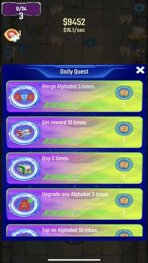 Fun idle game, merge alphabets to grow and win the fruit army. Each letter has a personalize skill and needs to be streamlined. Players only need to use one finger to play the game, move, arrange a reasonable squad, merge the alphabet to evolve and win the mighty fruit army.