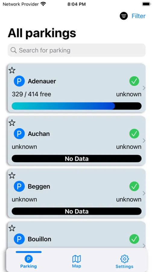 Discover the convenience of finding your perfect parking spot with our app. Easily navigate through the city of Luxembourg and view the availability of parking lots in real-time. Simply tap on a parking lot to learn more about it. In the map view, you can quickly locate parking lots and find the best option near your destination. Whether you're heading to a shop, restaurant, or any other location, simply enter the address in the search bar and let the app guide you with a suggested route and estimated travel time. Upon arriving at your destination, receive a notification and snap a photo of your car for easy reference later. Keep track of all your trips and their corresponding photos in the settings tab.