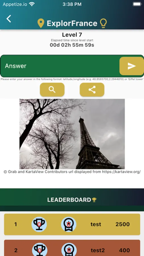 ExplorFrance is a geographical treasure hunt game that lets you discover the hidden wonders of France. It gives you the possibility to navigate through the different regions of France using satellite views and pedestrian views, and to guess the location of the different landmarks.