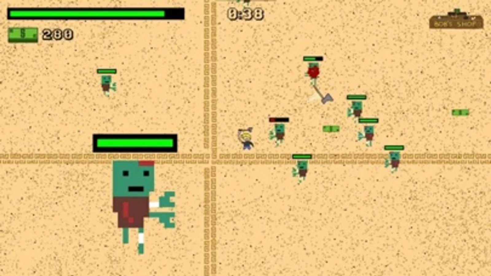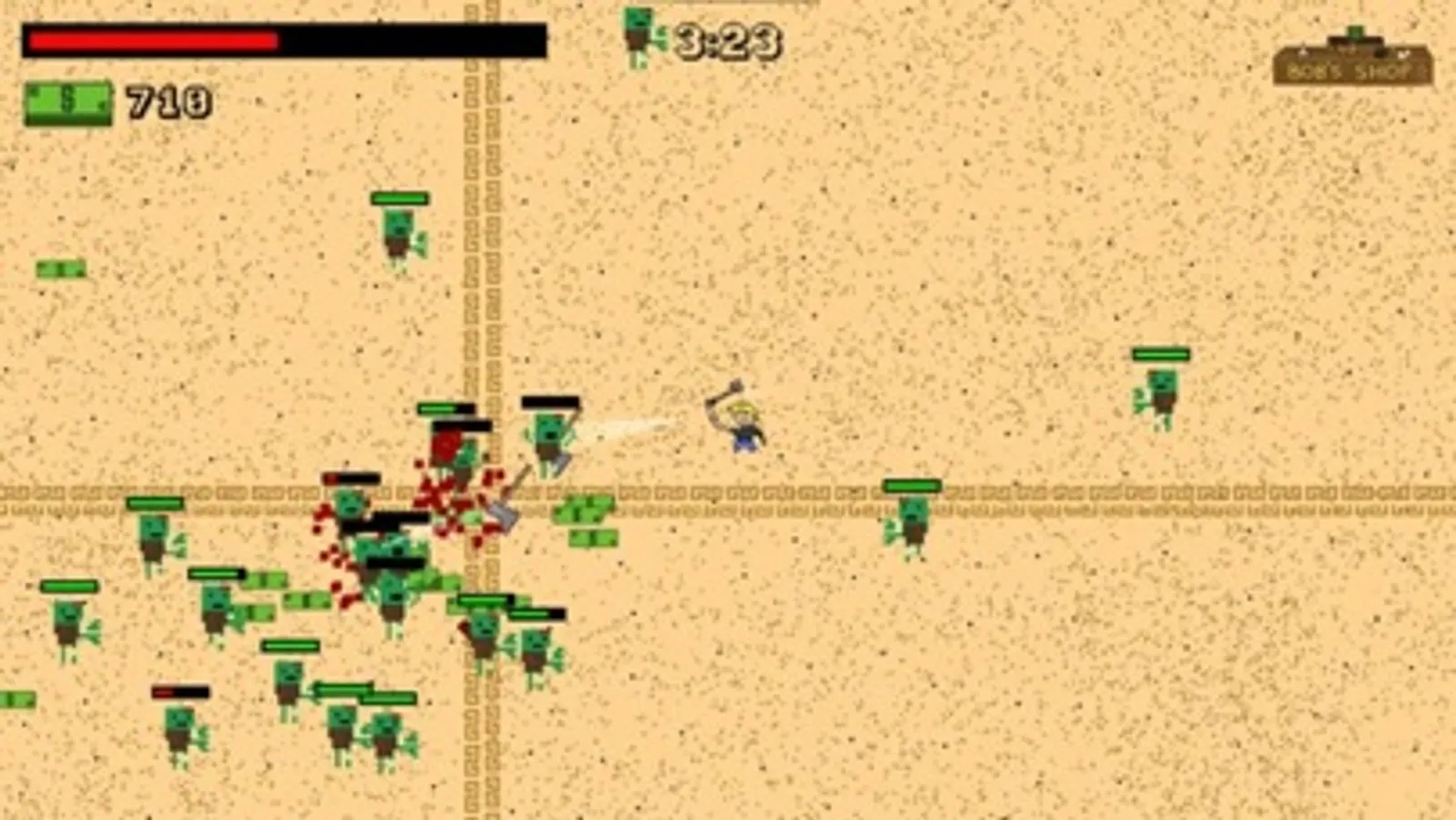 Survive for as long as you can by fighting hordes of zombies and upgrading your character with a lot of different upgrades with the money you get from them!