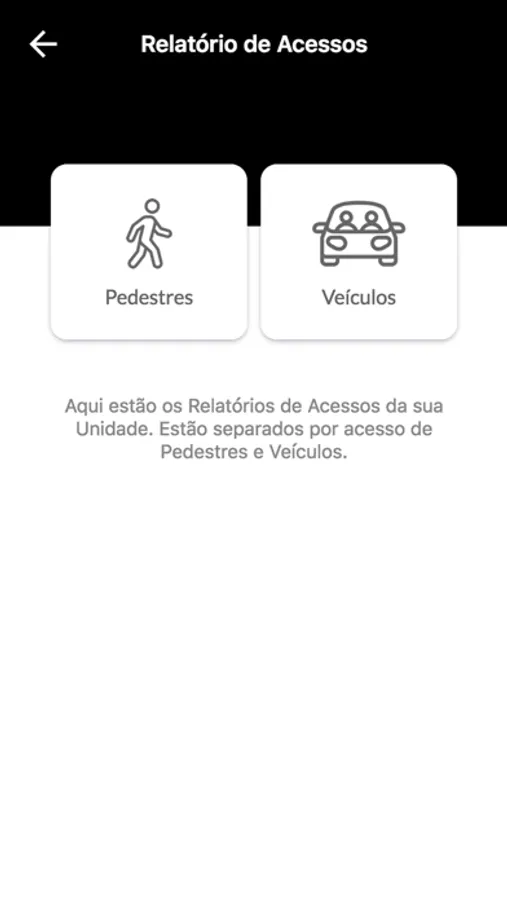 O morador pode visualizar todos os acessos relacionados à sua unidade, com data, hora, tipo e local da passagem.