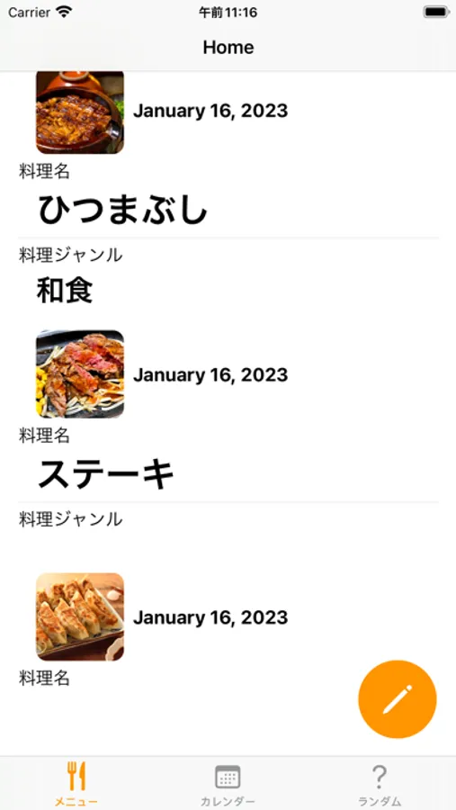 ・献立を考えるのが面倒な時に、これまでの料理の中からランダムで料理名を表示する機能
