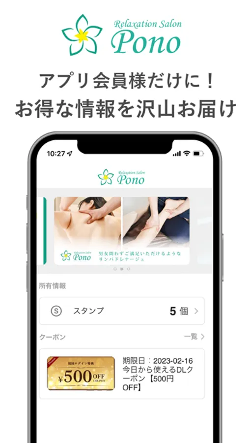 【リラクゼーションサロン Pono】の公式アプリが登場!!